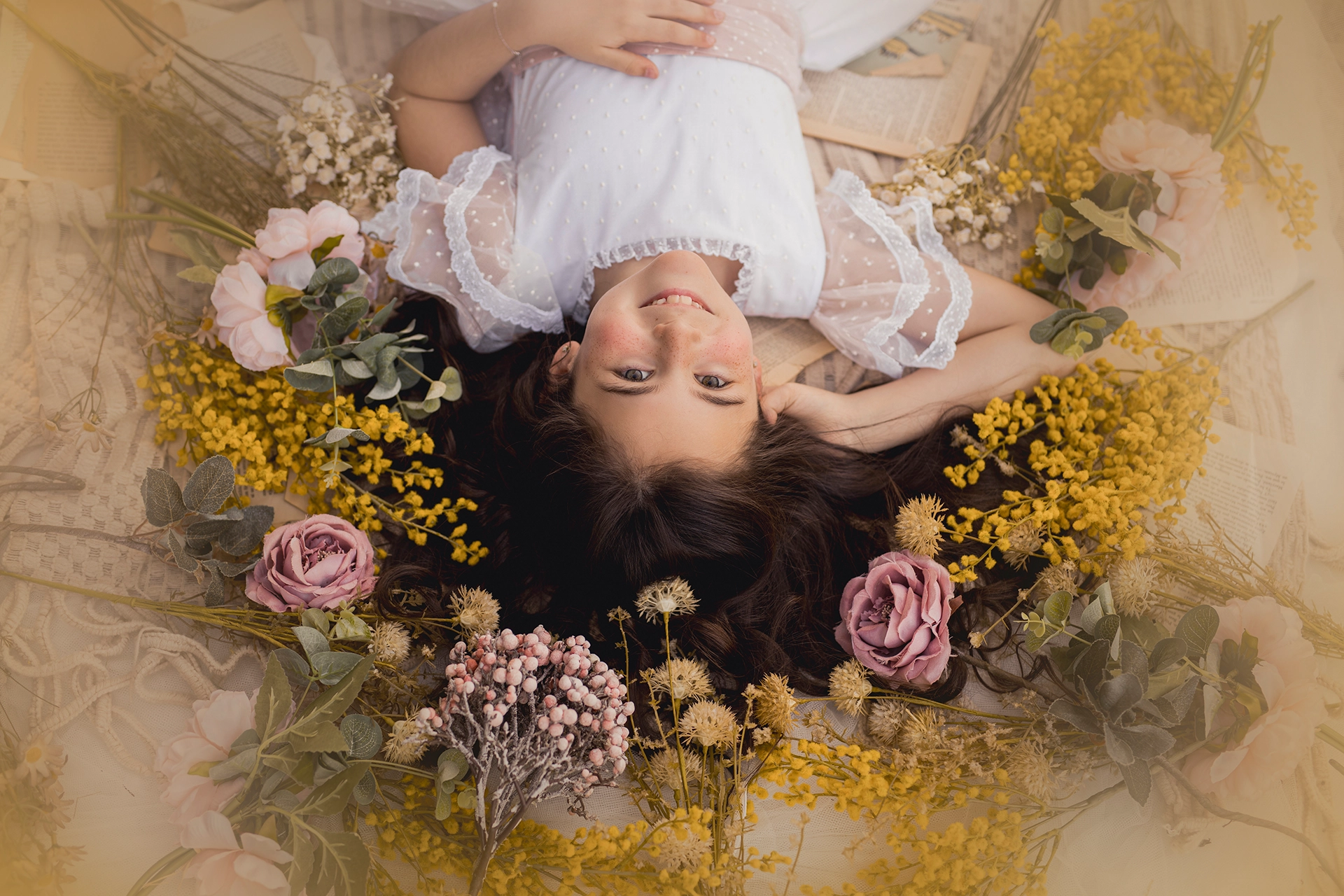 En esta sesión combinamos estudio con exteriores, y el resultado no ha podido ser más bonito. Las lluvias de principios de primavera hicieron que este año los exteriores fueran únicos.